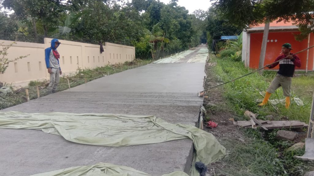 Pembangunan itu dialokasikan, untuk pembangunan betonisasi Jalan Desa di Jalan Kebon Jati RT 01, 04, 05 RW 01 dengan volume, panjang 580, lebar 4 meter dan tinggi beton 15 centimeter.