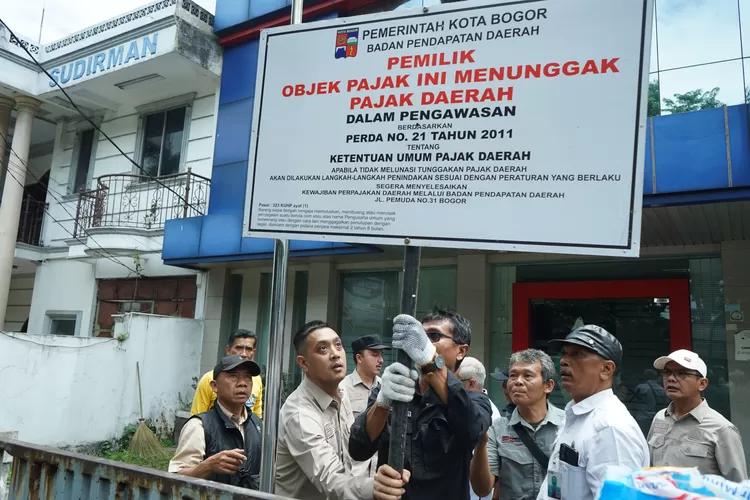 BogorOne.co.id | Kota Bogor – Tim gabungan dari Badan Pendapatan Daerah (Bapenda) dan Satuan Polisi Pamong Praja (Satpol PP) Kota Bogor memasang plang pengawasan di sepuluh titik objek pajak yang menunggak pembayaran Pajak Bumi dan Bangunan Perdesaan dan Perkotaan (PBB-P2) serta pajak hotel.