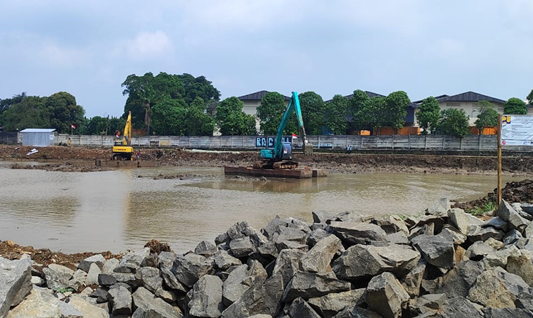 Balai Besar Wilayah Sungai (BBWS) menerjunkan alat berat untuk menormaliasi Setu Tlajung Udik di Kecamatan Gunung Putri, Kabupaten Bogor. Foto : BogorOne.co.id