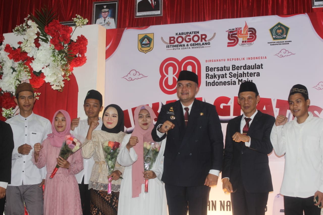 Acara ini merupakan bagian dari program Pemkab Bogor untuk membantu masyarakat dalam memenuhi kebutuhan dasar mereka, termasuk pernikahan yang sah dan tercatat secara resmi dalam menyambut Hari Ulang Tahun ke-80 Kemerdekaan RI.