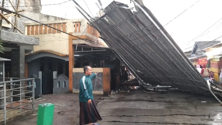 BogorOne.co.id | Kabupaten Bogor – Atap baja ruko di tepi Jalan Raya Cikampak, Desa Bojongrangkas, Kecamatan Ciampea, Kabupaten Bogor, terlepas dan menimpa rumah warga akibat angin kencang disertai hujan deras yang terjadi pada Rabu, 8 Oktober 2025 sore.