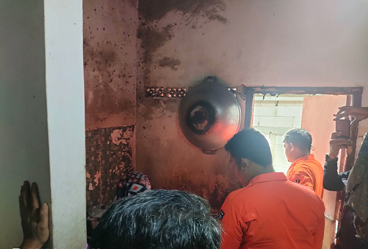 Petugas memeriksa kondisi dapur rumah kontrakan di Bantarjati, Bogor Utara, yang hangus terbakar akibat kebocoran gas elpiji 3 kilogram, Sabtu 9 Agustus 2025. Foto : Dok. BPBD Kota Bogor.