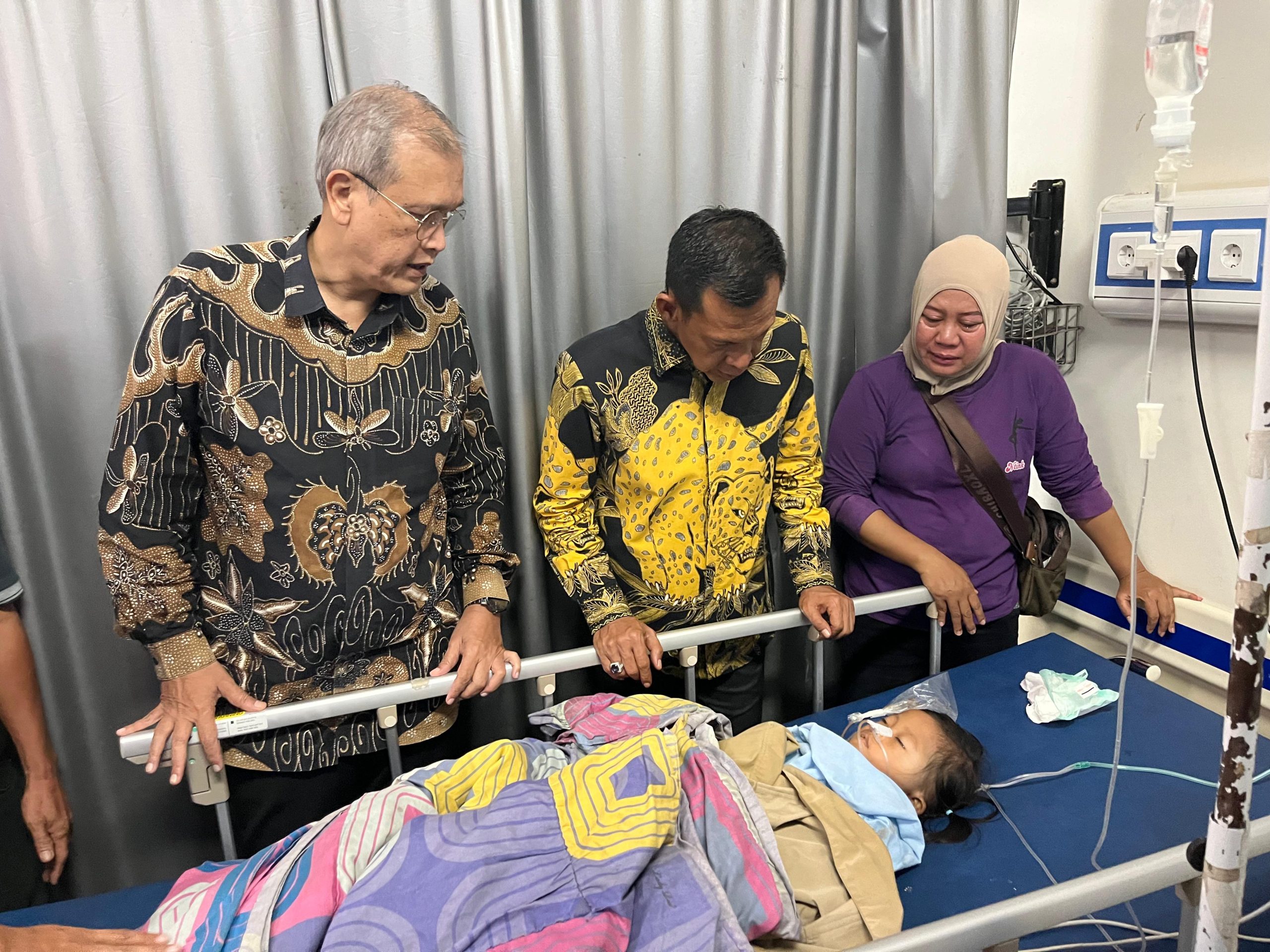 BogorOne.co.id | Kota Bogor – Wakil Bupati Bogor, Ade Ruhandi, meninjau para korban insiden ambruknya bangunan Majelis Taklim di Kampung Sukamakmur, Kecamatan Ciomas, yang tengah dirawat di RSUD Kota Bogor, Minggu 7 September 2025.