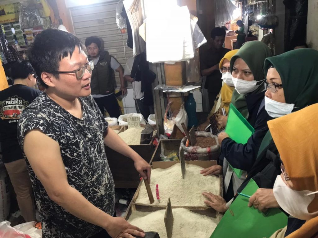 Tim Satgas Pangan Polbangtan Bogor didampingi Tim Dinas Ketahanan Pangan Kabupaten Bogor dan Kepala Unit Pasar Cibinong berkeliling menemui pedagang pasar yang menjual komoditas pangan strategis.