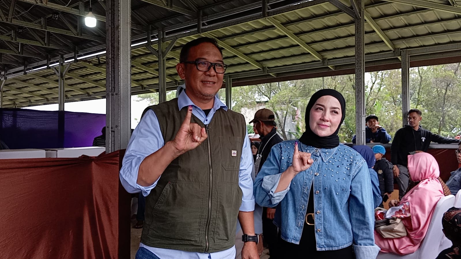 Mantan Bupati datang ke TPS bersama sang istri dan juga putrinya Nurunnisa Setiawan yang maju dalam pemilihan legislatif DPRD Kabupaten Bogor.