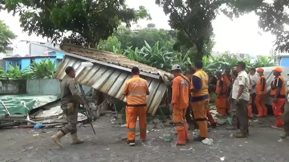 BogorOne.co.id | Jakarta – Bangunan liar yang dijadikan markas ormas (organisasi kemasyarakatan) di atas lahan milik negara di kawasan Pademangan, Jakarta Utara, dibongkar petugas gabungan, Jumat (16/5/2025).