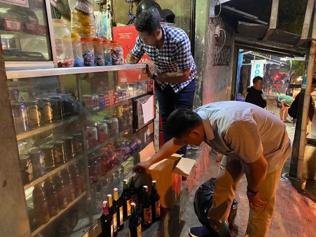 Dari dua lokasi berbeda, yakni di warung kelontong sepanjang Jl. Pancasan dan warung kelontong sekitar Jalan Pasir Kuda, Tim Kujang berhasil menyita 299 botol miras.