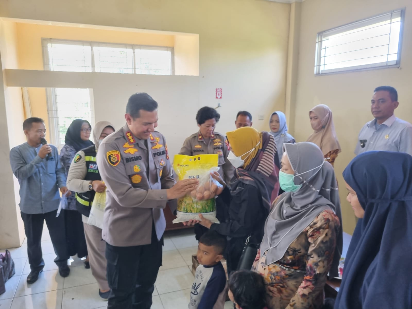 Dalam kesempatan tersebut, Kapolresta Bogor Kota berkenan memberikan bantuan berupa beras dan telur kepada peserta stunting.
