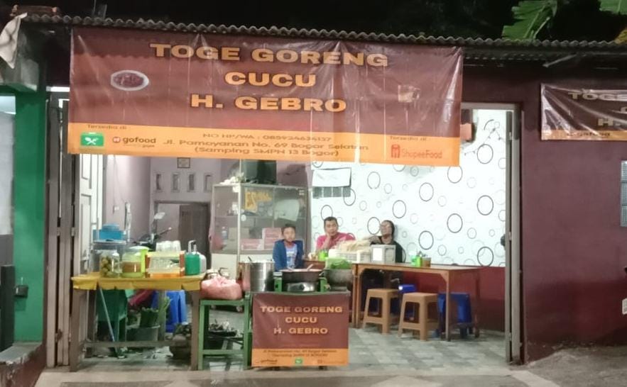 Kata dia, Pak gebro itu dulu membuka di pasar anyar Bogor asal muasalnya. Kini toge goreng H Gebro dipegang tiga generasi, yakni Khaerudin (43) cucu dari H Gebro, yang kini membuka toge goreng di Jalan Pamoyanan Nomer 68, Kelurahan Rangga Mekar, Kecamatan Bogor Selatan Kota Bogor.