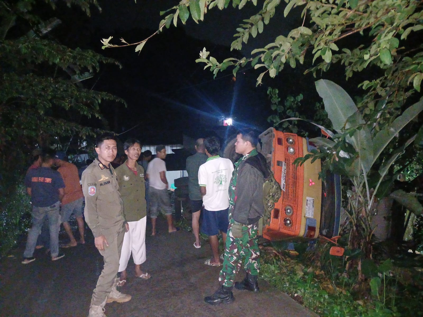 “Truk yang dikemudikan oleh Prayit tidak kuat menanjak, lalu mundur dan terguling mengenai rumah warga. Untungnya tidak ada korban jiwa, hanya luka ringan,” ujar Muhamad Dian, anggota Satpol PP Kecamatan Cijeruk, Kamis 30 Oktober 2025.
